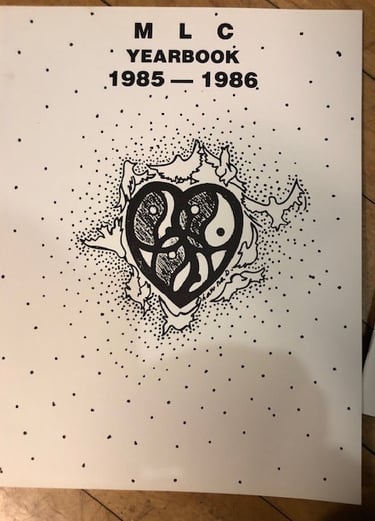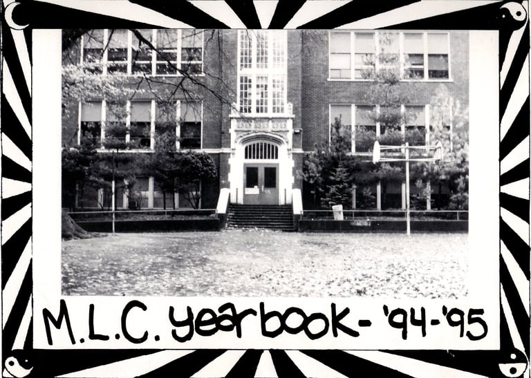 The cover from the first to be posted, the M.L.C. Yearbook–'94-'95, is adjacent; click the image or here to view all 50 pages. It will be followed, gradually, by all of its brethren, by share-worthy calendars, and by MLC's amazing literary magazines spanning 57 years.